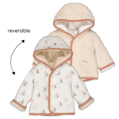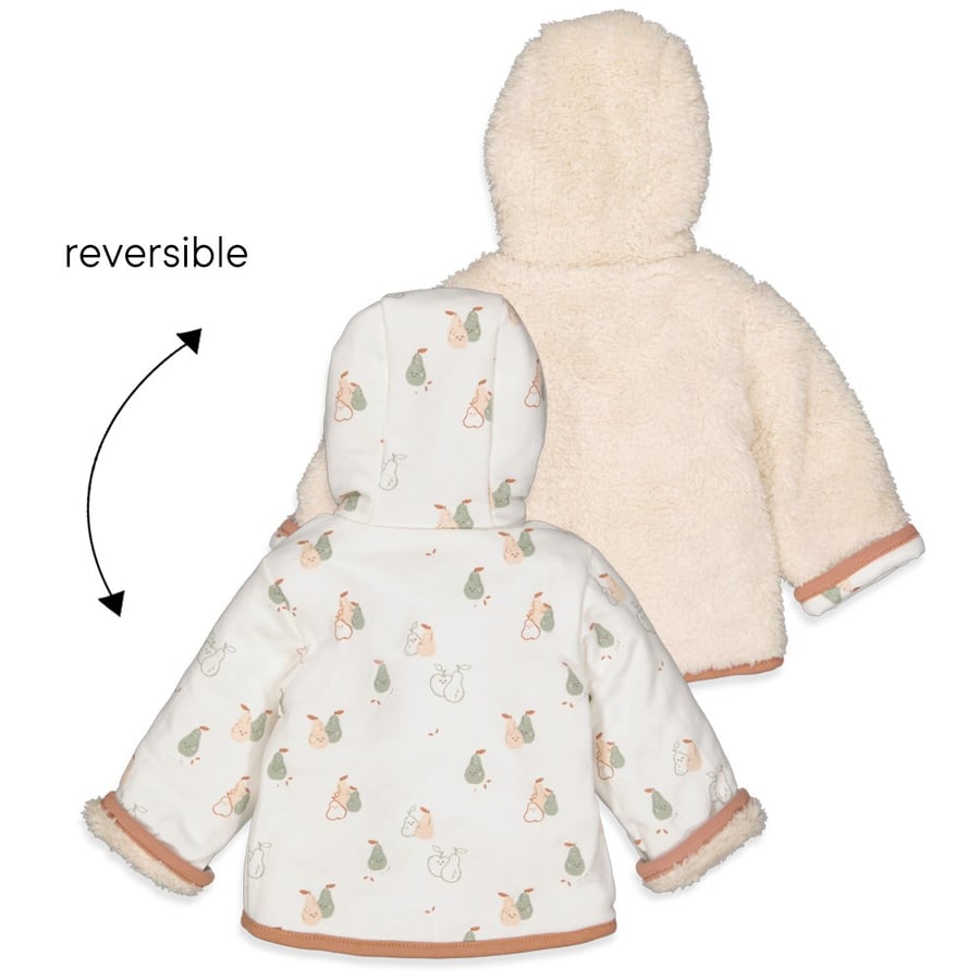 Dettagli del prodotto: Giacca reversibile con cappuccio 1° lato: pile con tasche per giacca 2° lato: Allover print Abbottonatura con bottoni a pressione Bordi colorati Polsini a coste morbide Materiale e cura: Materiale: 100% poliestere / 94% cotone biologico, 6% elastan. Lavabile fino a 40°C Non asciugare in asciugatrice Non stirare a caldo