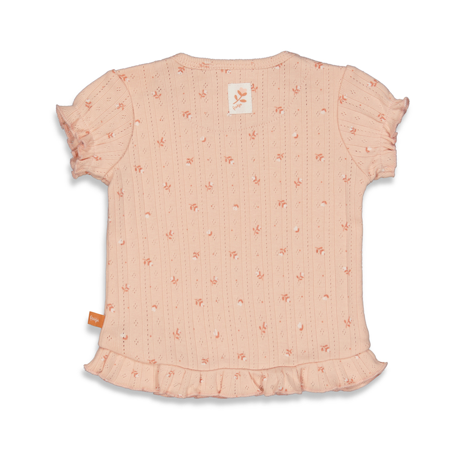 Dettagli prodotto: Maglietta con Allover print collo rotondo Maglia traforata Bottoni a pressione sulle spalle Dettagli con volant su maniche e orlo Materiale e cura: Materiale: 100% cotone biologico Lavabile fino a 40°C Non asciugare in asciugatrice Non stirare a caldo