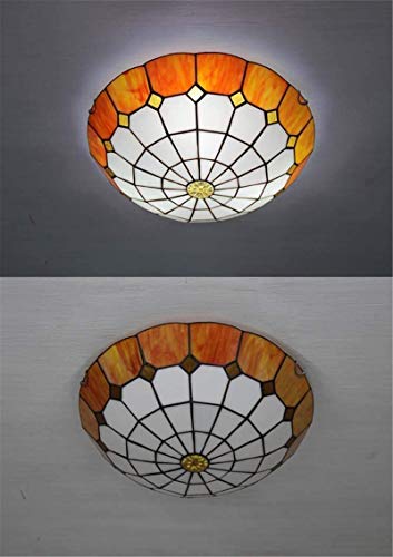Feeyond Lampada da Soffitto in Stile Tiffany, Lampada da Soffitto per Corridoio in Vetro Colorato retrò con Paralume Rotondo, Lampada da Incasso A Reticolo Quadrato retrò,Arancia,30cm
