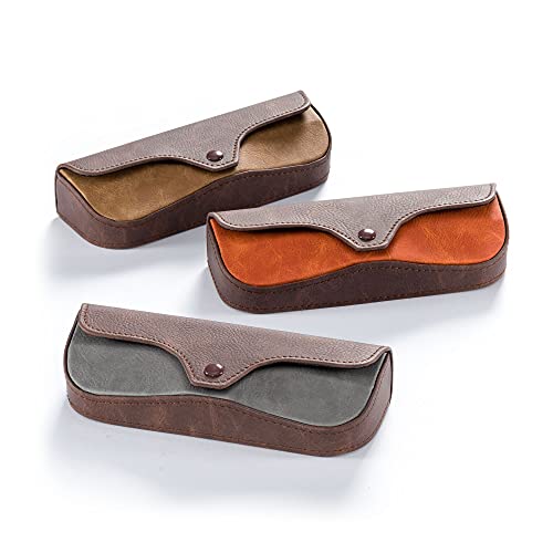 FEFI - Custodia rigida per occhiali in 2 colori, effetto pelle, Marrone/grigio, M