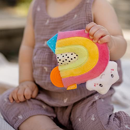 Il piccolo arcobaleno è un compagno fedele: il giocattolo colorato per bambini è ideale per afferrare e coccolare, il sonaglio integrato e il cigolio risvegliano lo spirito di scoperta in un attimo e stimolano a giocare