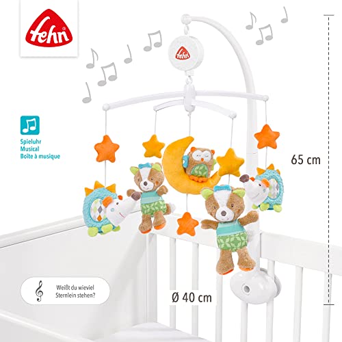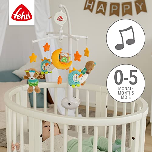 Fehn 071214 Giostrina musicale, carillon con i simpatici abitanti della foresta da ascoltare per stupirsi, da agganciare al lettino, per i neonati da 0-5 mesi, altezza: 65 cm, diametro 40 cm