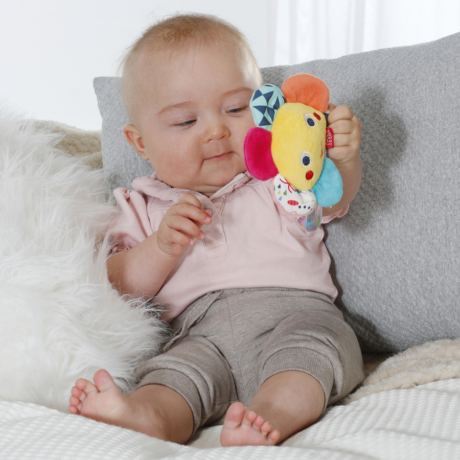 COLOR Friends L'anello con sonaglio a fiore della collezione è facile da afferrare, sentire, far suonare e frusciare, risvegliando la curiosità del bambino e invitandolo a scoprire ed esplorare. Il morbido giocattolo per bambini con sonaglio a perline offre un sacco di divertimento quando si agita, si afferra e si gioca, promuovendo in modo giocoso il senso dell'udito, della presa e del tatto del bambino, nonché le abilità motorie fini e l'apprendimento precoce. I piccoli esploratori prenderanno subito a cuore il simpatico fiore di stoffa e lo porteranno ovunque con sé come fedele compagno, a casa, in viaggio, nel seggiolino auto o nella carrozzina! Dettagli del prodotto: Dimensioni: 15 cm Con anello a sonaglio, carta frusciante e materiale misto Materiale: velour, tessuto stampato;