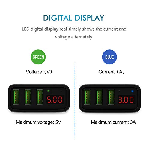 Feigo Caricabatterie USB a 3 porte caricabatterie rapido 30W con caricatore a parete con display digitale a LED per iPhone, iPad, Samsung Galaxy, Nexus, HTC, LG e altri (Nero)
