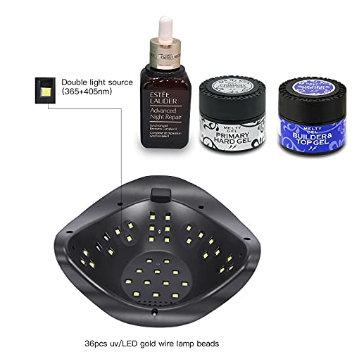 [36 LED Nail Art Lamp] Ci sono 36 lampadine distribuite uniformemente. Rispetto alla tradizionale lampada gel, il tempo di polimerizzazione è ridotto dell'80% e l'essiccazione del gel richiede solo 10 secondi. È ideale per uso privato e professionale nei saloni. La lampada per la cura delle unghie è adatta a tutti i tipi di lucidatura in gel UV e LED.