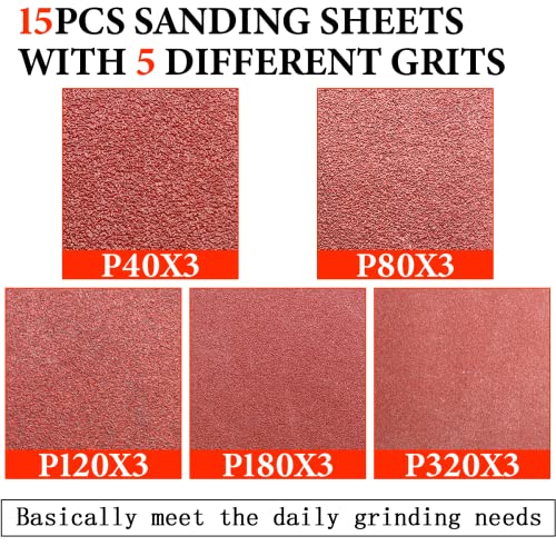 【Confezione】15 nastri abrasivi (3 x grana 40, 3 x grana 80, 3 x grana 120, 3 x grana 180, 3 x grana 320 )