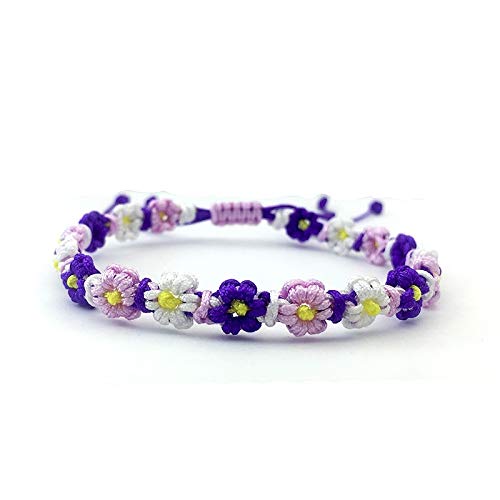 FEIHUI Bracciale Intrecciato,Fiore 3D Tessuto A Mano Chic Pianta Viola Braccialetti con Ciondoli Regolabili Gioielli Bohémien Regalo di Amicizia Fortunato per Ragazzo Ragazza Coppie Uomo Donna