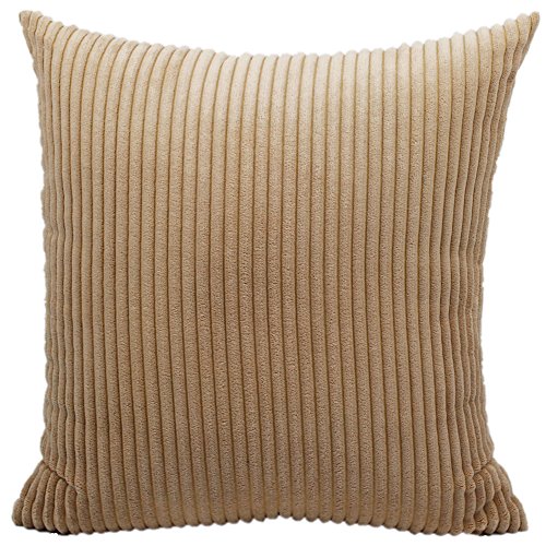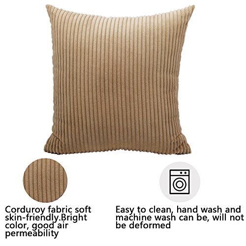 FEILEAH Fodere per Cuscini a Righe Velluto Copricuscino a Coste Cuscini Caso Moda Quadrato Morbido Cuscini Coperture Home Decor Federe per Divani Stanza Letto Cerniera Nascosta,Cammello,55X55