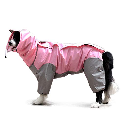 Feiling Impermeabile per Cani Cappotto Antipioggia Patchwork a 4 Gambe Giacca con Cappuccio Rimovibile, per Cane di Taglia Piccolo Media e Grande Poncho Animali (30#, Rosa)