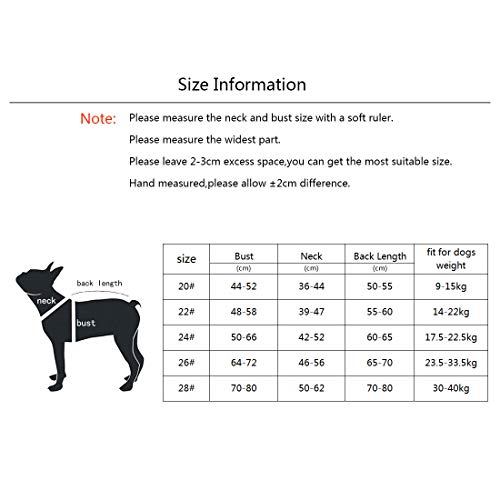 ***Dimensioni: si prega di leggere le dimensioni dettagliate nella descrizione delle immagini. La giacca è adatta per cani di taglia media e grande, come Samoyed, Golden Retriever, Husky, Labrador, Beagle, American Cocker Spaniel.