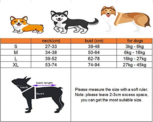 *** Suggerimento: l'imbracatura è adatta per cani di piccola taglia e media (3 kg - 45 kg). come ad esempio Samoyed, Golden Retriever, Husky, Beagle, American Cocker Spaniel, Labrador, German Shepherd Dog, Cane Corso. S per cani pesa 3 kg - 6 kg, M per cani pesa 6 kg - 16 kg, L per cani pesa 16 kg - 27 kg, XL per cani pesa 27 kg - 45 kg. Si prega di fare riferimento alle dimensioni effettive nelle immagini della descrizione.