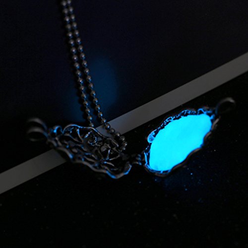 Feilok Collana da donna con ciondolo a medaglione aperto dal design classico, con gocce d'acqua luminose, colore blu illuminante, Metallo, senza pietra