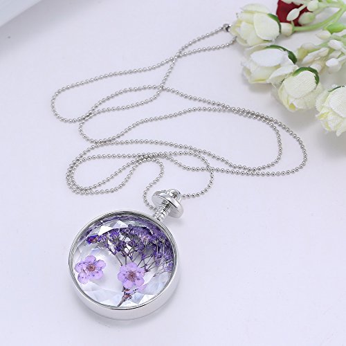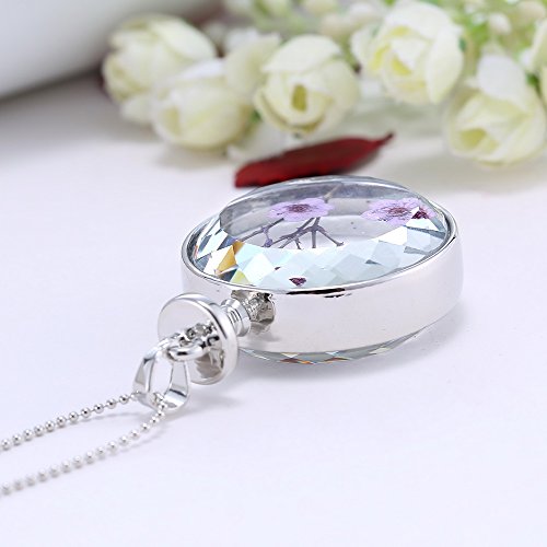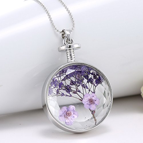 Feilok Fashion - Collana color argento a catena rotonda, con ciondolo trasparente in cristallo con lavanda essiccata, collana lunga da donna