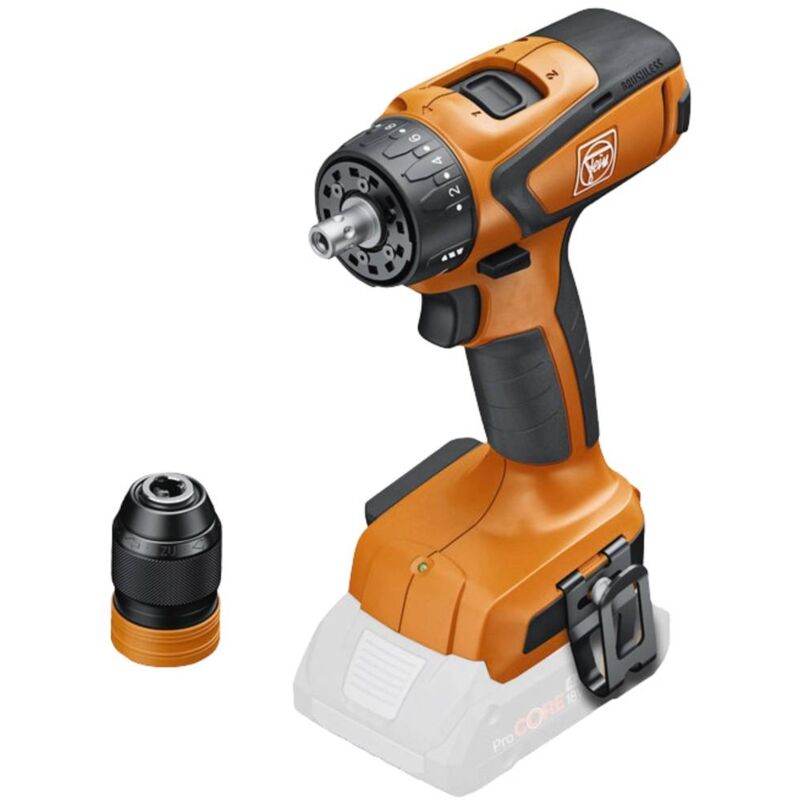 Dettagli tecnici Caratteristiche elettroutensile brushless, senza batteria, senza caricatore Momento torcente (max.) (morbido/duro) 30/40 Nm Peso 1.3 kg Quantità di batterie ricaricabili incluse 0 Tensione 18 V Tipo prodotto Trapano avvitatore a batteria Trapano avvitatore a batteria ASCM 18 QSW AS Trasmissione completamente in metallo con 4 marce per una velocità di taglio ottimale per la foratura in metallo e viti autoperforanti fino a 6 mm. La più grande varietà di applicazioni con il sistema QuickIN FEIN. Lavorare più velocemente in metallo e legno con una sola macchina. Con la sua struttura compatta e leggera di 1,3 kg, ASCM 18 QSW è il più leggero avvitatore a 4 velocità in confronto all'industria. Motore brushless FEIN PowerDrive con un grado di rendimento maggiore del 30 % e lunga durata. Mandrino in metallo pieno QuickIN (120 Nm) con ganasce di serraggio in metallo duro e elevate forze di serraggio. Regolazione meccanica della coppia. L'interfaccia AMPShare consente quasi il