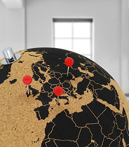 FeinKnick Mappamondo in Sughero Alto 25 cm con 54 spilli Diversi - Mappamondo Girevole in Sughero - Mappamondo Come Idea Regalo per giramondo