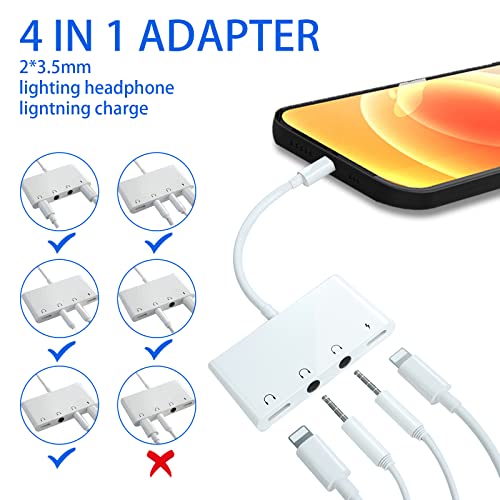 FEINODI Adattatore da Lightning a jack cuffie 3,5 mm Convertitore per Caricabatterie 4 in 1 Splitter per Ricarica Audio Auricolari da 3,5 mm Compatibile Phone 13 12 11 X 8 7 6 Pad Supporto IOS 9-15