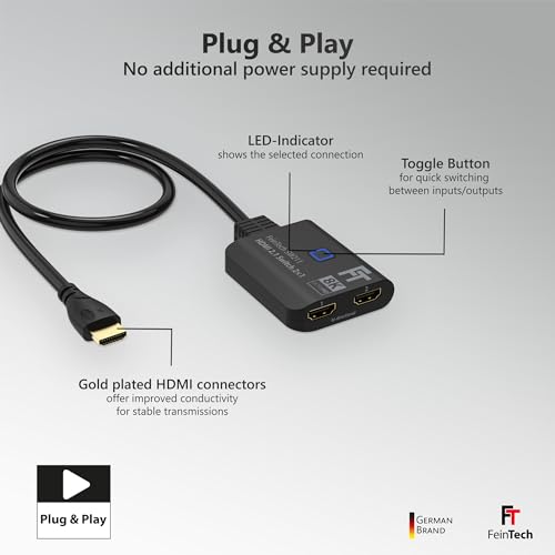 FeinTech SW211 HDMI 2.1 Switch 4k 120Hz 2 in 1 Out o 1 in 2 Out bidirezionale con cavo HDMI integrato, 8K, 48 Gbps, HDMI splitter, supporta HDR, VRR, ALLM e Dolby Vision