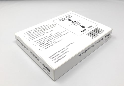 Contenuto della confezione: 1 x interruttore HDMI bidirezionale con cavo HDMI 8K integrato (circa 50 cm di lunghezza), 2 adesivi colorati per la marcatura dei cavi, istruzioni (DE, EN, FR, IT)
