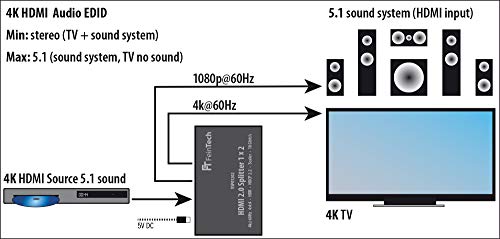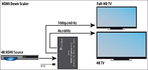 FeinTech VSP01202 Splitter HDMI 2.0 1x2 con 4K HDR Down-Scaler Audio-EDID Nero