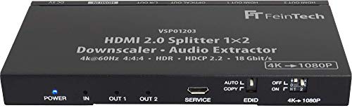 FeinTech VSP01203 Splitter 1x2 HDMI 2.0 con Audio Extractor Toslink Down-Scaler 4K 60Hz HDR