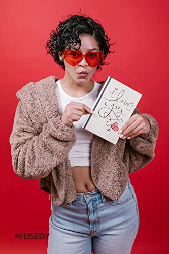 FEISEDY Confezione da 2 occhiali da sole a forma di cuore senza montatura da donna One Piece trasparente alla moda Love Occhiali B2826-F2, Rosa, rossa