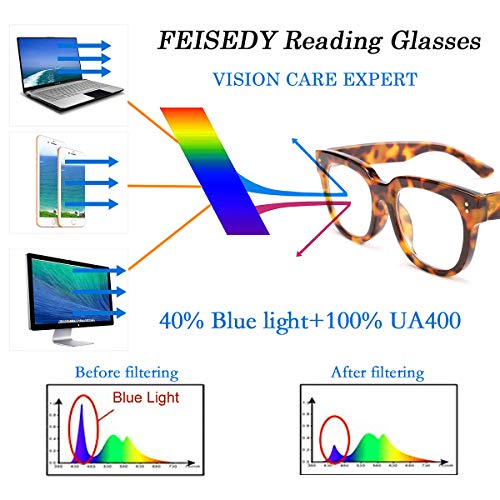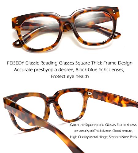 Occhiali da lettura FEISEDY - Le cornici quadrate e spesse ti rendono più elegante. Cornice di ottima qualità, grado di presbiopia accurato, lenti a luce blu, protegge la luce della salute degli occhi, perfetta per la protezione degli occhi durante la lettura, attaccandosi alla salute degli occhi. Ottima scelta per una vita migliore.