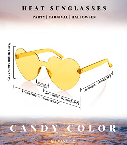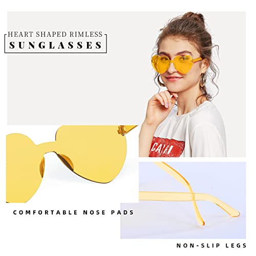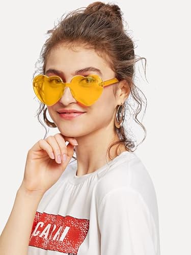 FEISEDY Occhiali da sole a forma di cuore senza bordi, occhiali da sole con cuore, lenti trasparenti da donna B2419, giallo.