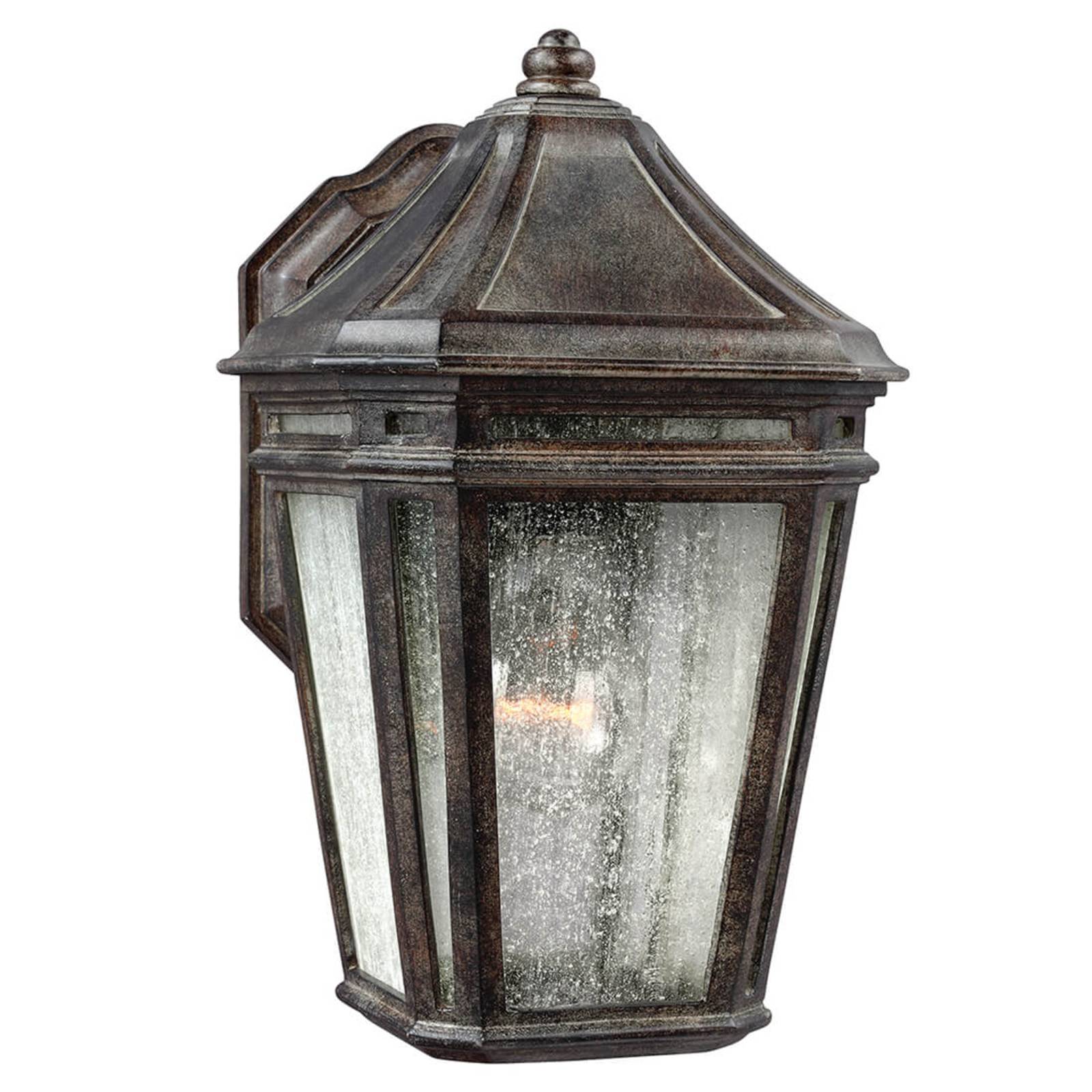 Lampada da parete per esterni laccata marrone LondontowneQuesta lampada da parete ha un aspetto molto tradizionale nel suo design completo e si adatta perfettamente a proprietà antiche o dal design rustico. Come caratteristica particolare, non solo va notato che la luminosità della luce è molto accogliente grazie al paralume composto da lastre di vetro di diverse dimensioni, ma va anche sottolineata la robusta lavorazione di Londontowne. Il corpo è costituito da un composito di lattice di polvere di marmo (EPMM) stabile ai raggi UV e resistente alla corrosione, che consente alla lampada di resistere anche a condizioni atmosferiche estreme, come il grande caldo o il freddo. Inoltre, la lampada da parete per esterni Londontowne è anche resistente all'acqua di mare, il che significa che può essere montata anche su edifici vicini al mare.