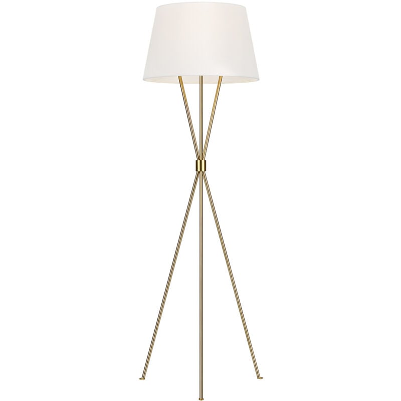 Collezione Penny METALLO SENZA TEMPO Lampada da terra a 1 luce - Ottone brunito. Le lampade da terra Penny sono senza tempo ed eleganti, con una base a treppiede ispirata alla metà del secolo e gambe allungate che si incontrano in un punto studiato su misura. Le lampade da terra Penny includono un paralume in tessuto bianco.