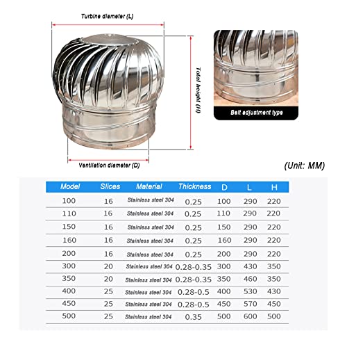 * Selezionare la dimensione in base al diametro esterno del tubo. La palla del rotore ruota con vento minimo, che non solo si alza sul tetto, ma offre anche prestazioni eccellenti. Turbinii per tubi di ventilazione, camini e gas di scarico.