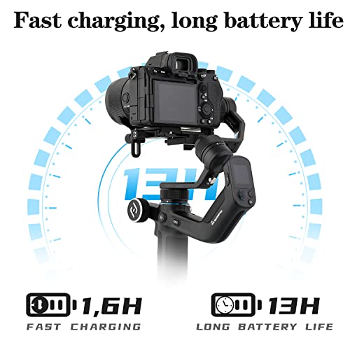 【Stabilizzatore Gimbal 4 IN 1 e Potente Compatibilità 】Lo SCORP Mini di FeiyuTech ha un carico utile fino a 1200g/2.6Ib facilmente compatibile con fotocamere Mirrorless e fotocamere tascabili (per Sony, per Canon, per Nikon, per Panasonic, ecc. Controllare gli elenchi di compatibilità delle fotocamere per maggiori dettagli), action camera come GoPro e smartphone (larghezza: 52mm~82mm, spessore:<8,9mm).