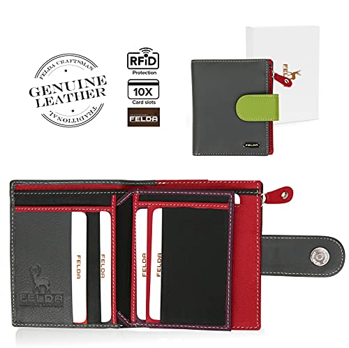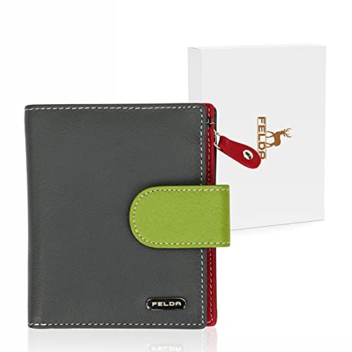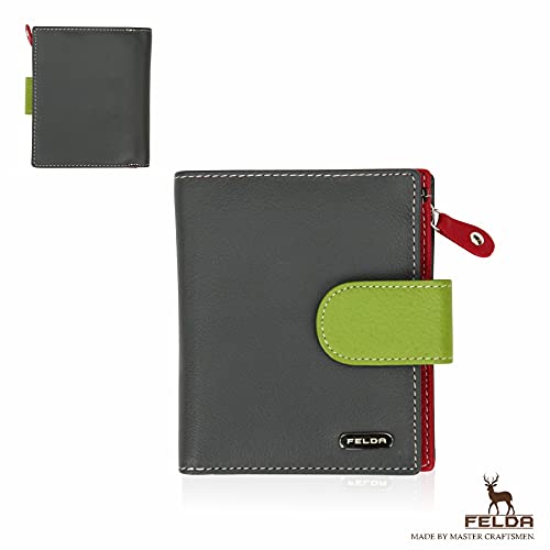Felda portafoglio RFID da donna - 10 fessure per carte - vera pelle - multicolore - grigio multicolore