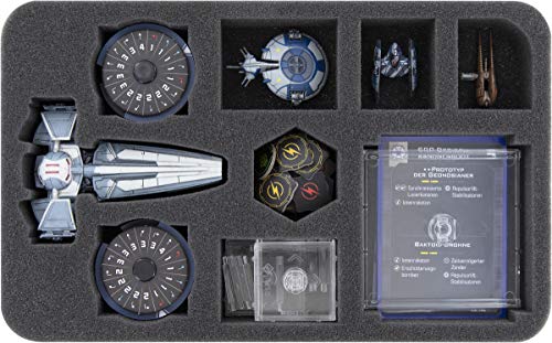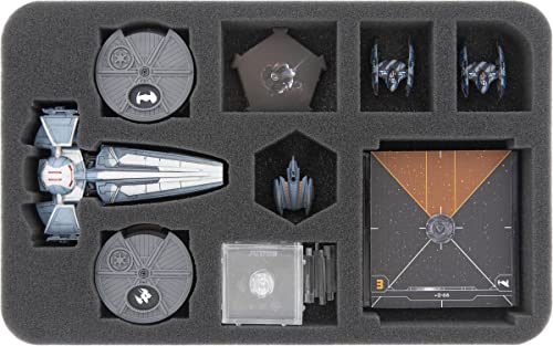 Vassoio in schiuma Feldherr Half-Size per riporre in sicurezza un modello di nave Infiltratore Sith Infiltrator del pacchetto di espansione Star Wars X-Wing 2nd Edition Expansion Pack. Spazio aggiuntivo per altre piccole miniature di combattenti.