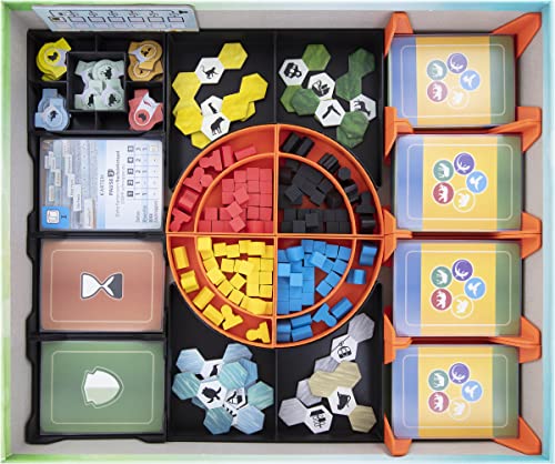 L'Organizer garantisce l'ordine nella scatola del gioco e una migliore esperienza di gioco. Grazie alla struttura chiara, si risparmia tempo quando si prepara il gioco e si ha sempre una visione d'insieme. Anche la pulizia dopo la partita è notevolmente accelerata. I due originali in dotazione sono sostituiti dall'Organizer e non sono più necessari. Conservateli separatamente.