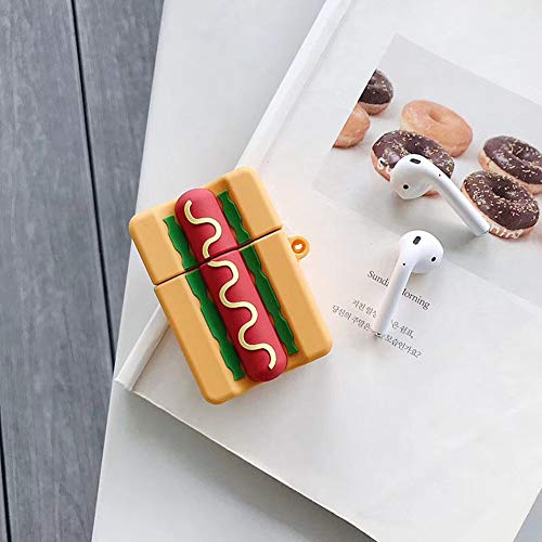Felfy 3D Cute Cartoon Creativo Custodia Compatibile con AirPods 1 & 2,Compatibile con Airpods Cover Ultra Morbida Silicone Cover Antiurto Antipolvere Case Per Ragazzo e Ragazza,Hot dog