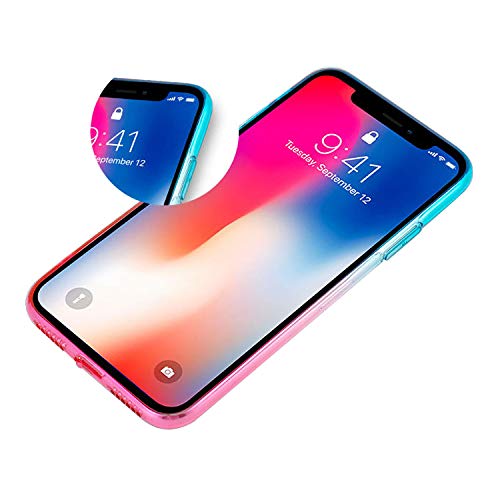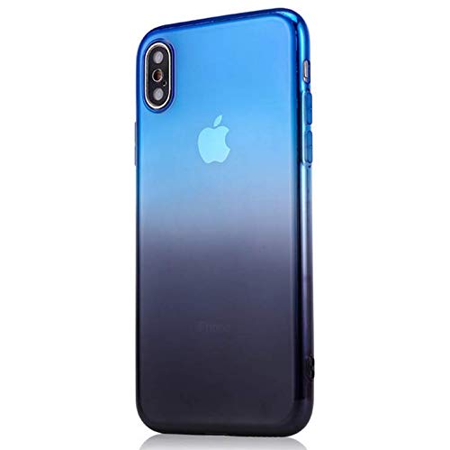 Felfy Okssud iPhone XS Custodia,Cover iPhone X Trasparente Silicone,iPhone XS Cover Blu Nero Silicone Gradiente Colore Morbido Crystal Clear TPU Case