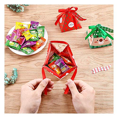 Feliciay 30 Scatole di Carta Natalizie per Dolcetti, Dolci, Cioccolato, Articoli per Feste, Regalo, Confezione Regalo con Nastro Ed Etichetta per Natale (3 Motivi, Babbo Natale, Alce, Albero)
