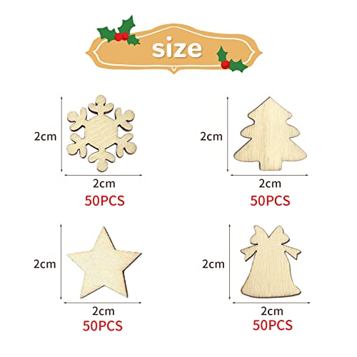 Quantità sufficiente: 200 pezzi di legno. Stelle + albero di Natale + fiocchi di neve + campanelle, 50 pezzi ciascuno, sufficienti per le vostre vacanze o per il fai da te, da condividere con la famiglia e gli amici.