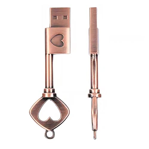 FeliSun A forma di cuore Chiavetta USB Metallo Chiavetta USB Bronzo Flash Disk 16 GB 32 GB 64 GB U Disco con Portachiavi (16GB, Chiave)