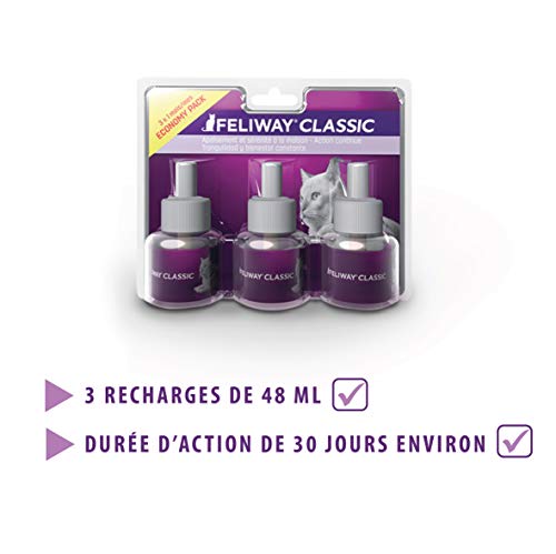 Feliway Classic, flacone di ricarica, 3 pezzi da 48 ml, confezione risparmio, Tierglück24, per il benessere dei gatti