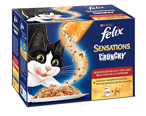 Felix Gatto Umido mangime Sensations Crunchy in Gelatina (con Crunchy knusper stueckchen Gusto varietà dal Acqua) Confezione da (6 X 1,0 kg) porzione Sacchetti e 6 X 40 G knusper stueckchen