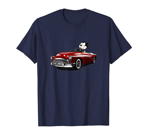 Felix Old-Skool Cat Drives Retro Red Lowrider Convertible Maglietta