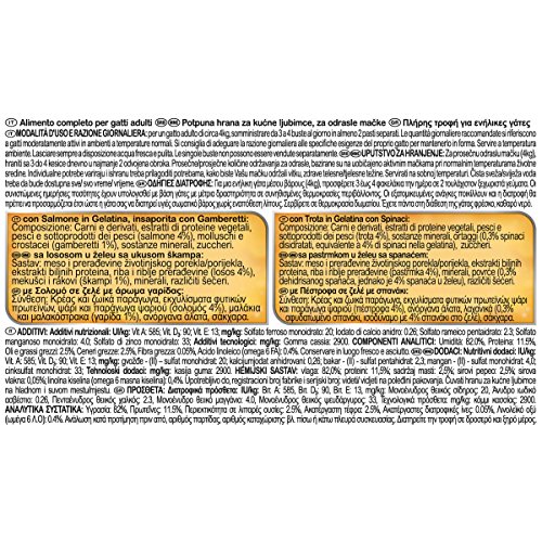 Felix Sensations Jellies Gatto con Salmone in Gelatina Insaporita con Gamberetti e con Trota in Gelatina e Spinaci, 4 x 100 g - Confezione da 10 pezzi