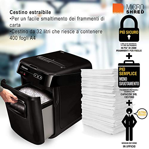 Fellowes Distruggi Documenti Automatico AutoMax 200M, a Microframmento, 200 Fogli, per Uso a Casa o in Ufficio