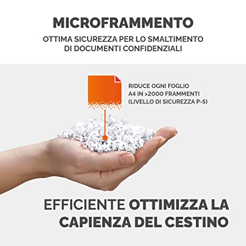 SICUREZZA AVANZATA: Di sicurezza superiore, il distruggi documenti a micro frammento 10M è l'ideale per eliminare i documenti altamente confidenziali, potendo ridurre un foglio A4 (70gsm) in più di 2000 frammenti, 10 volte più efficace di un distruggi documenti standard