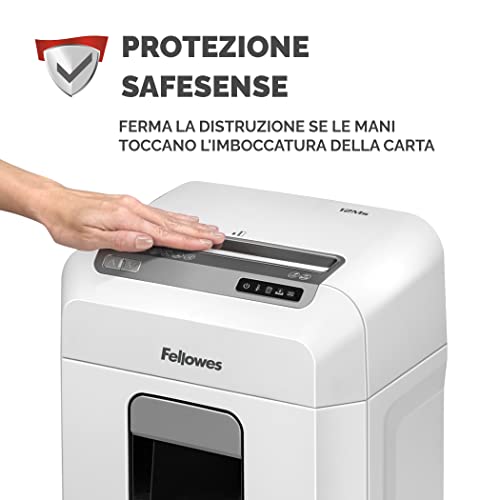 Fellowes Distruggidocumenti a microframmento 12Ms, 12 fogli, per casa e ufficio, con tecnologia SafeSense e retromarcia automatica, cestino da 23 litri, livello di sicurezza P4 [ESCLUSIVA AMAZON]