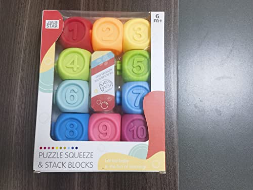 【Cubi Impilabili Bambini】10 Cubotti morbidi bambini, ogni blocco ha un animale in rilievo, forma, frutta, numeri arabi e motivi geometrici sui lati.I bambini possono sviluppare il loro senso del tatto e della visione toccando e osservando questi motivi inrilievo