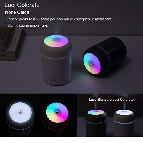 ♥ 【Funzionamento silenzioso e funzione luce notturna】 Il funzionamento silenzioso al di sotto di 30 dB può ottenere un'umidificazione silenziosa senza disturbare il sonno e il lavoro. Un buon strumento per evitare la secchezza. Impostazioni opzionali della luce notturna, luci bianche calde e luci colorate fredde (possono essere impostate premendo a lungo l'interruttore di alimentazione).