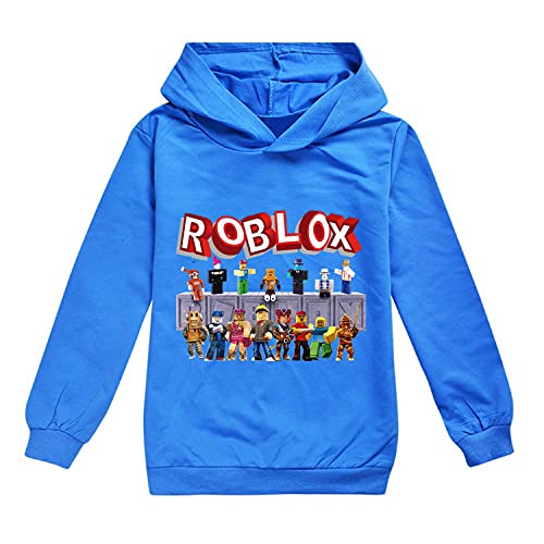 Felpa con cappuccio a maniche lunghe, abbigliamento sportivo casual pullover tuta Ro-blox gioco regalo Blu 9-10 Anni