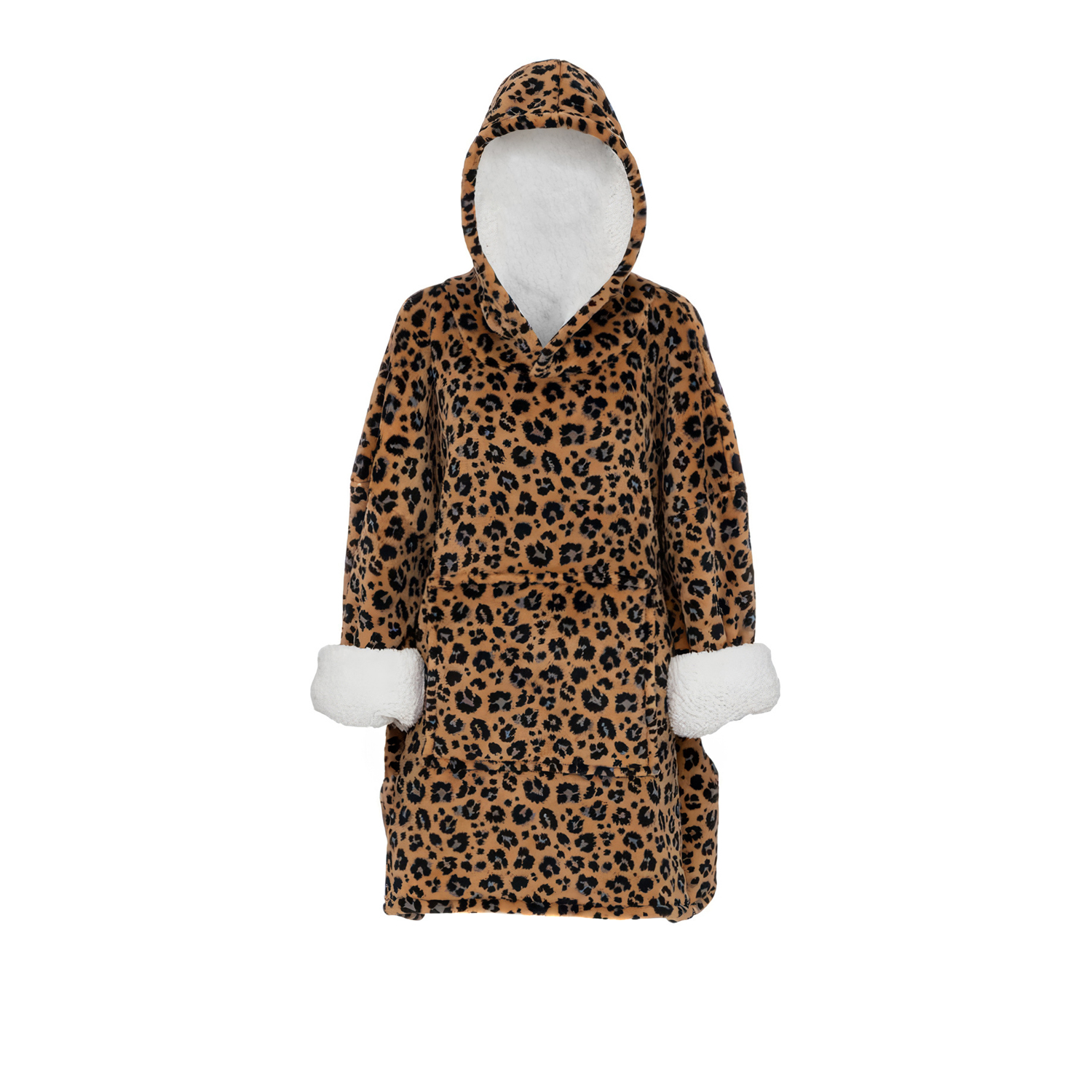 Originale e confortevole, la felpa con cappuccio di Atmosphera piacerà ai freddolosi e agli amanti dell'animalier! Ideale per i momenti di relax, questa originale coperta extra soffice si indossa proprio come una grande felpa ed è dotata di cappuccio e maniche bordate di pelliccia sintetica. La stampa con motivi leopardati la rende eccentrica e glamour. Taglia unica. Lavabile in lavatrice.